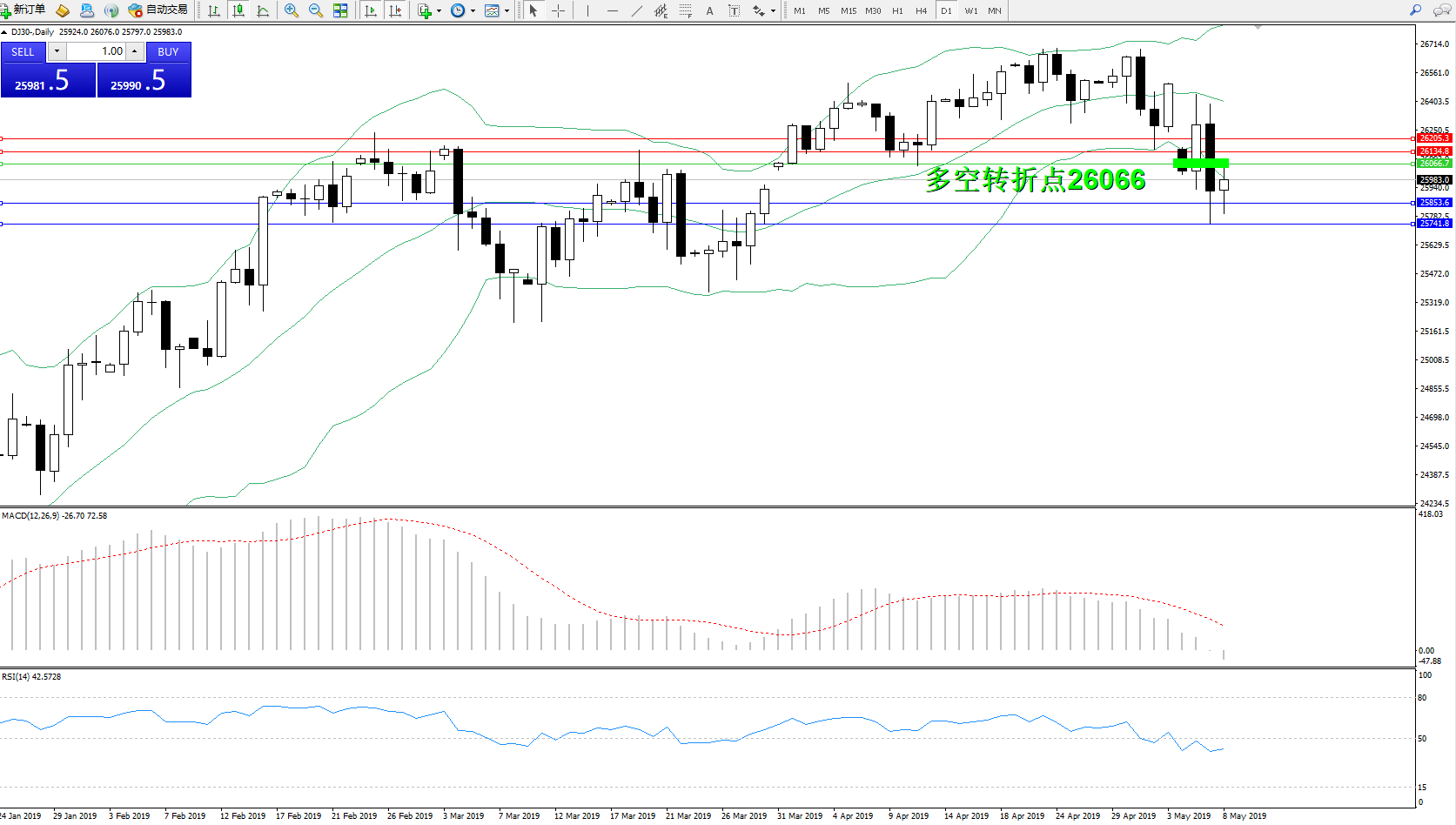 美国股市卫生保健、消费服务和基础材料等上涨的板块带领股指走高;与此同时,公用事业、电信和科技板块等下跌的使股指走低。道琼斯工业平均指数收涨2.24点,涨幅0.01%,报25967.33点。美方于5月10日将2000亿美元中国输美商品的关税从10%上调至25%。升级贸易摩擦不符合两国人民和世界人民的利益,中方对此深表遗憾,如果美方关税措施付诸实施,中方将不得不采取必要反制措施。