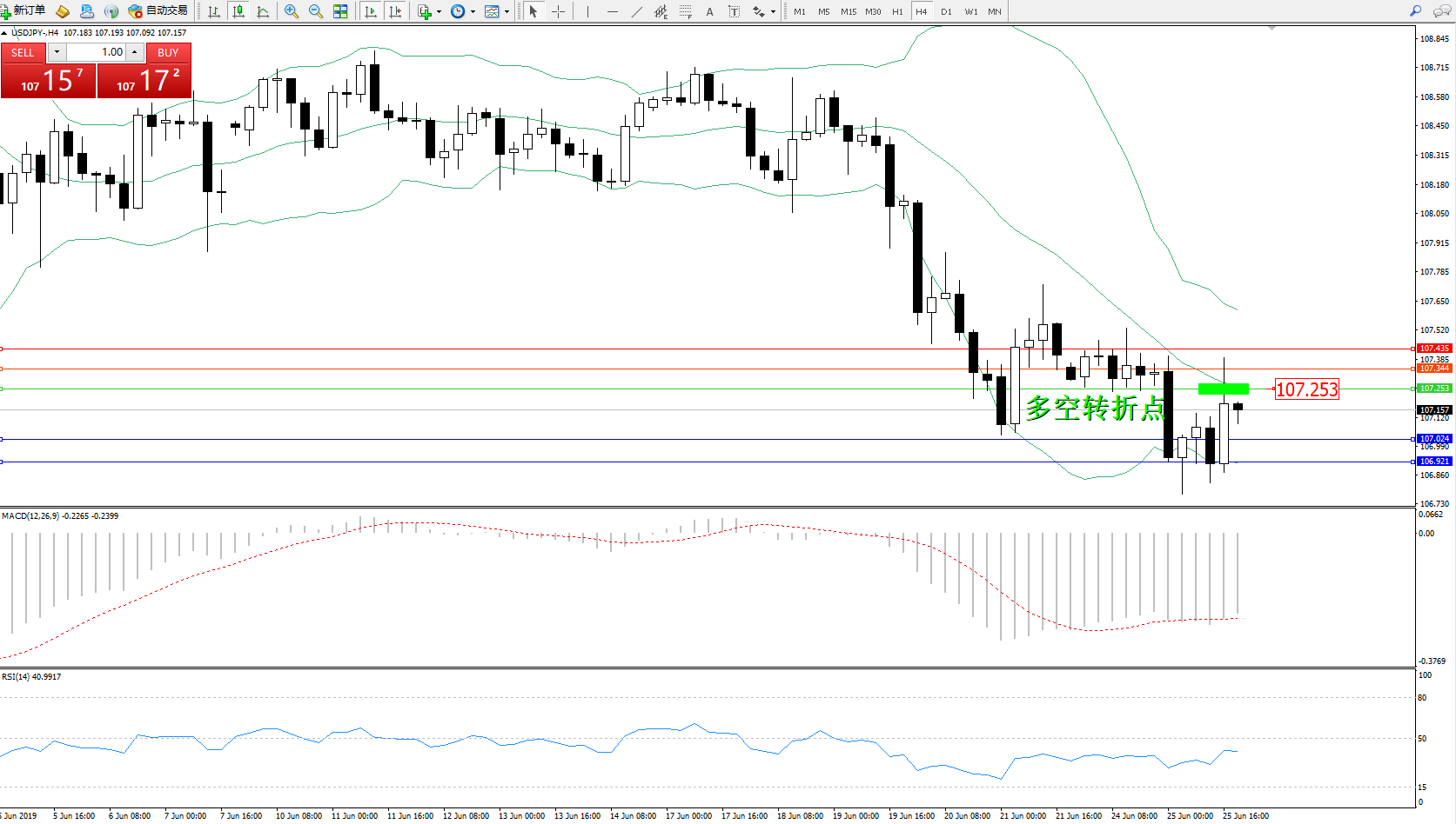 交易策略:107.253下方看跌,目标107.024106.921