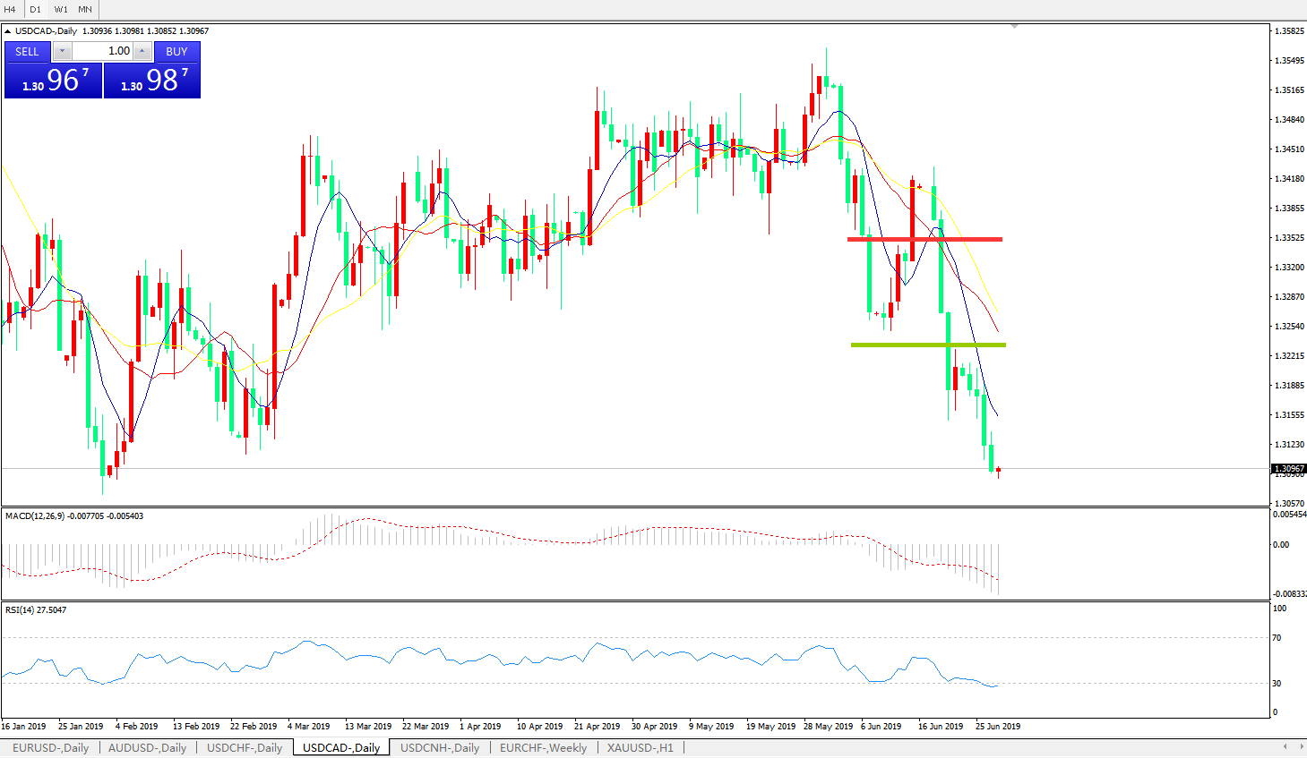 美元兑加元USDCAD 日线图: