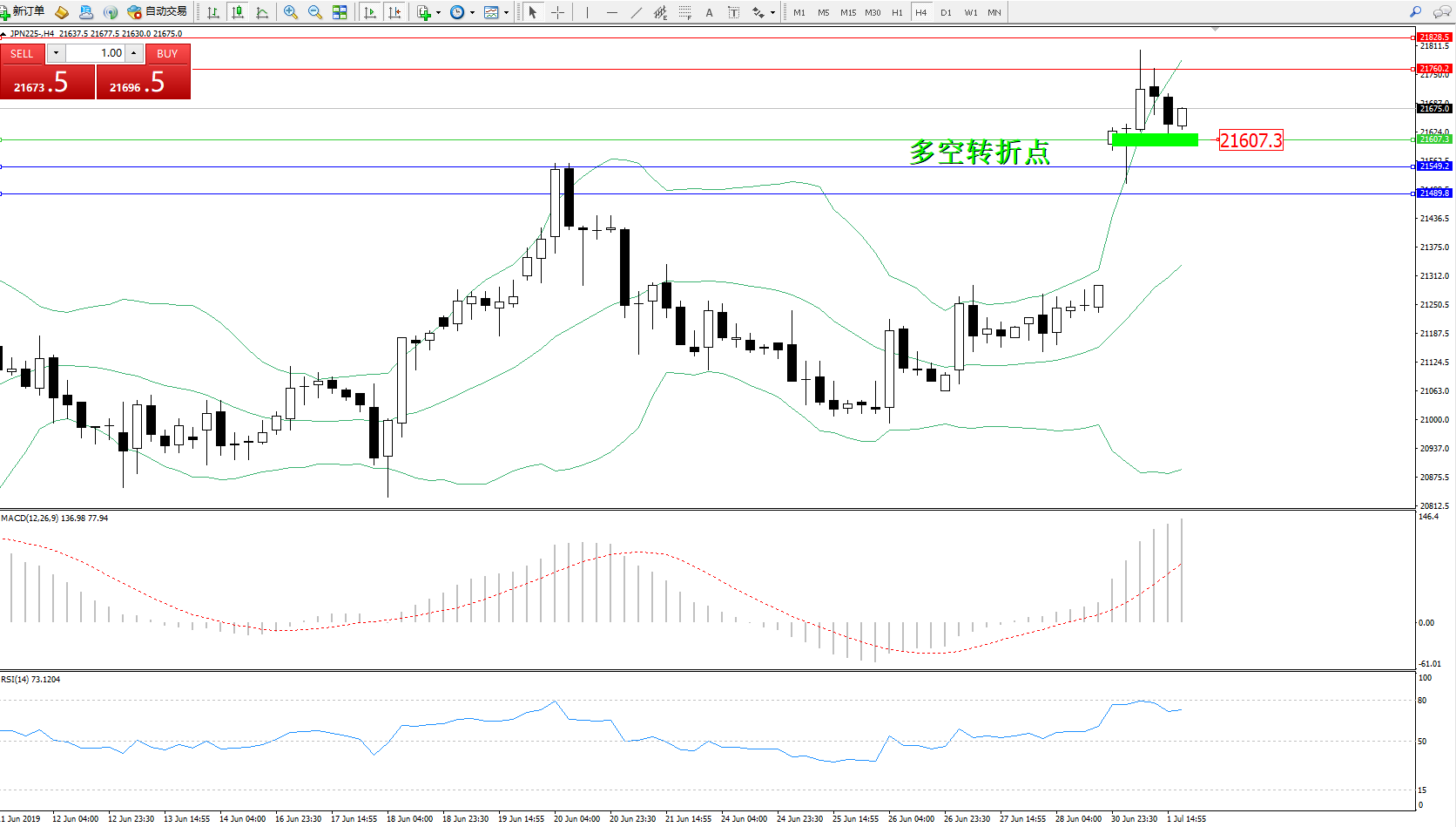 日经225指数71日(周一)收盘上涨457.58点,涨幅2.15%,报21733.50点。日经指数周一大涨逾2%,触及近两个月高点,美国和中国同意重启贸易谈判后,风险偏好改善,同时美国放松对华为的限制,提振科技类股。美国总统特朗普与中国国家主席习近平周末会晤后,中国同意购买数量未定的美国农产品,并重回谈判桌。但是没有为协议进展设定截止日,美中对协议的重要部分仍有分歧。