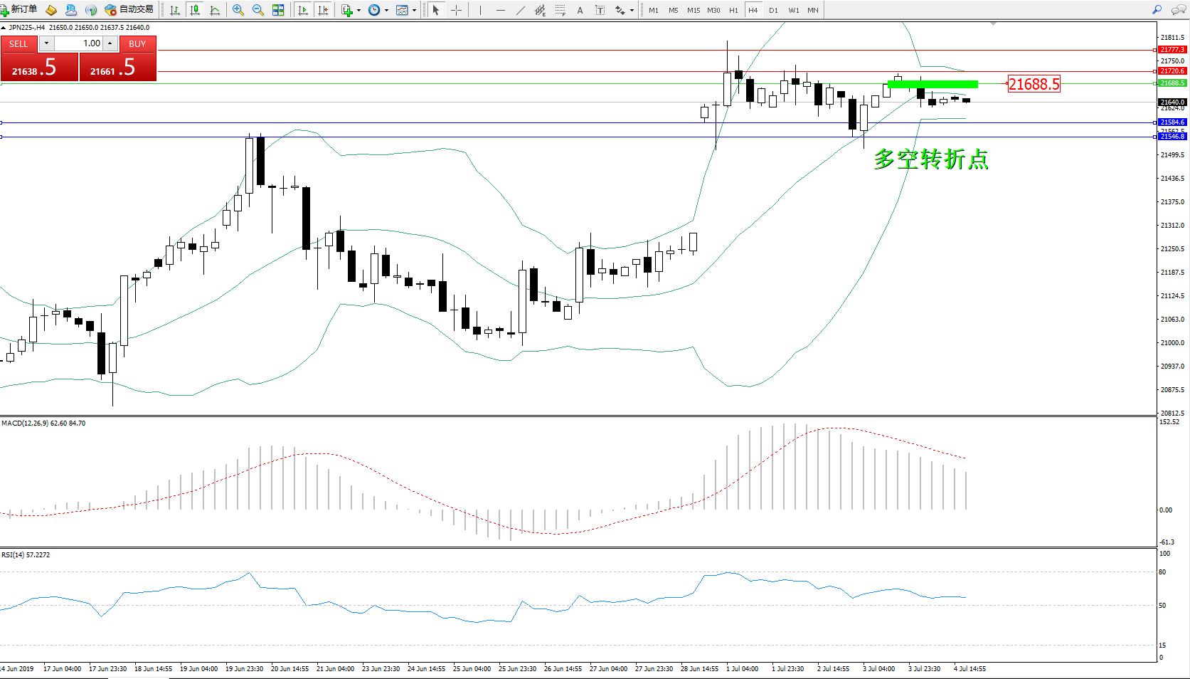 日经225指数7月4日(周四)收盘上涨36.84点,涨幅0.17%,报21675.00点。其中造纸业和纸浆、铁路和客车和房地产等上涨的板块带领股指走高。日韩贸易战开启,韩国开始抵制日货,日本央行调整三个期限区间的债券购买,此前该行上周暗示正在寻求解决收益率曲线变平的问题。