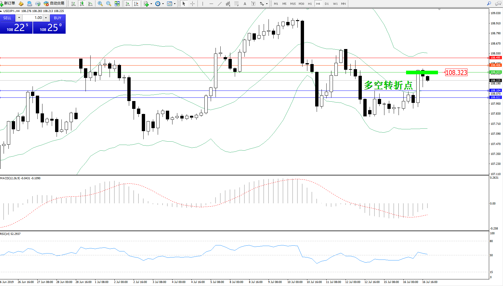 美日走高,美国零售消息数据表现良好,进一步证实美国经济韧性,令市场风险偏好情绪升温同时美联储强力降息预期下降,美元兑日元因此短时跳涨30点,升至两日新高108.25。并且,日韩贸易局势正在升温,尚没有缓解的动静,日元吸引力有所下滑。自5月中旬以来,美元兑日元汇率与美债收益率的相关性增强,而不是与股价同步波动。若美债收益率进一步走高,利差扩大或令日元进一步走低。