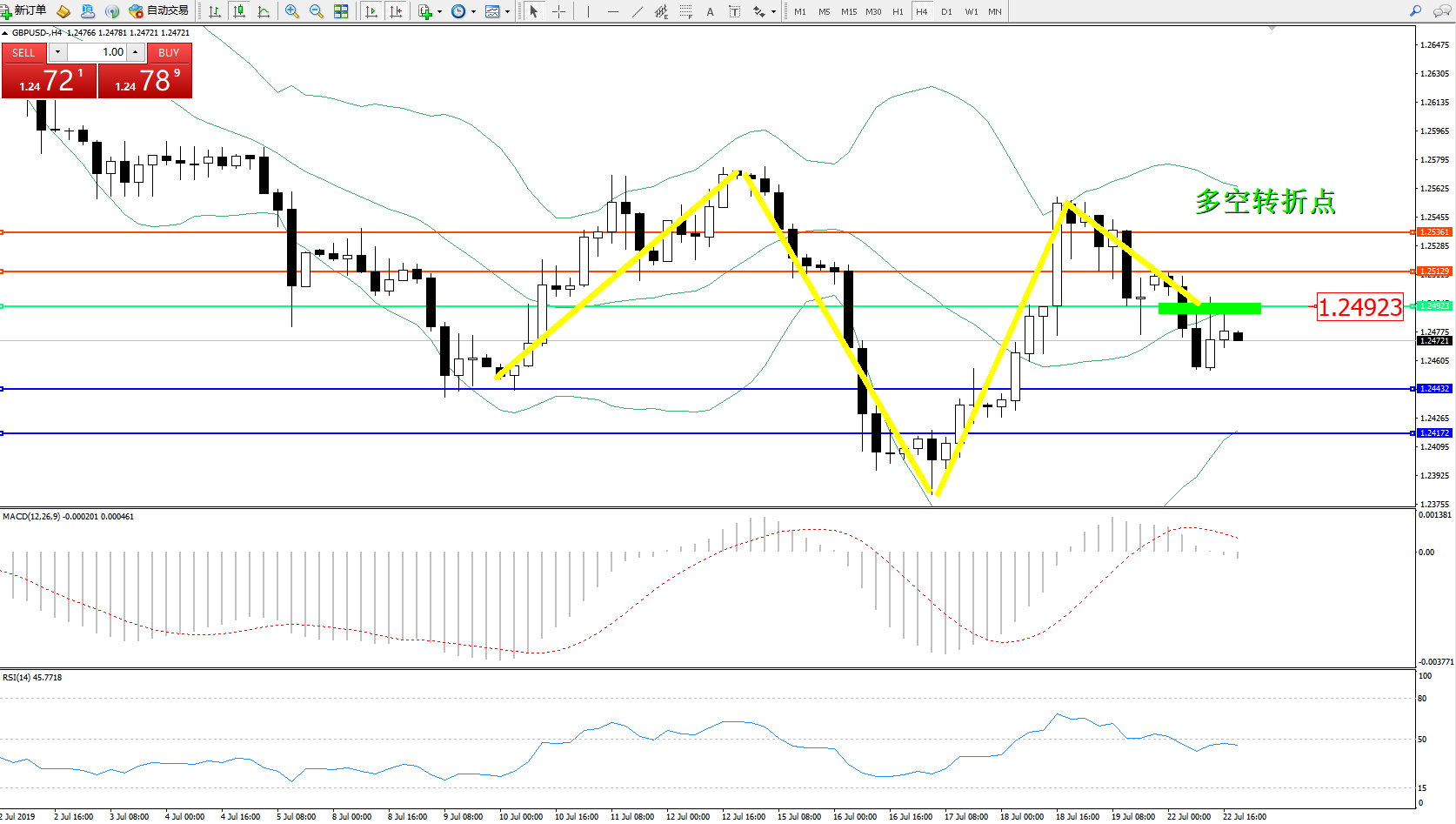 交易策略:1.24923下方看跌,目标1.24432、1.24172