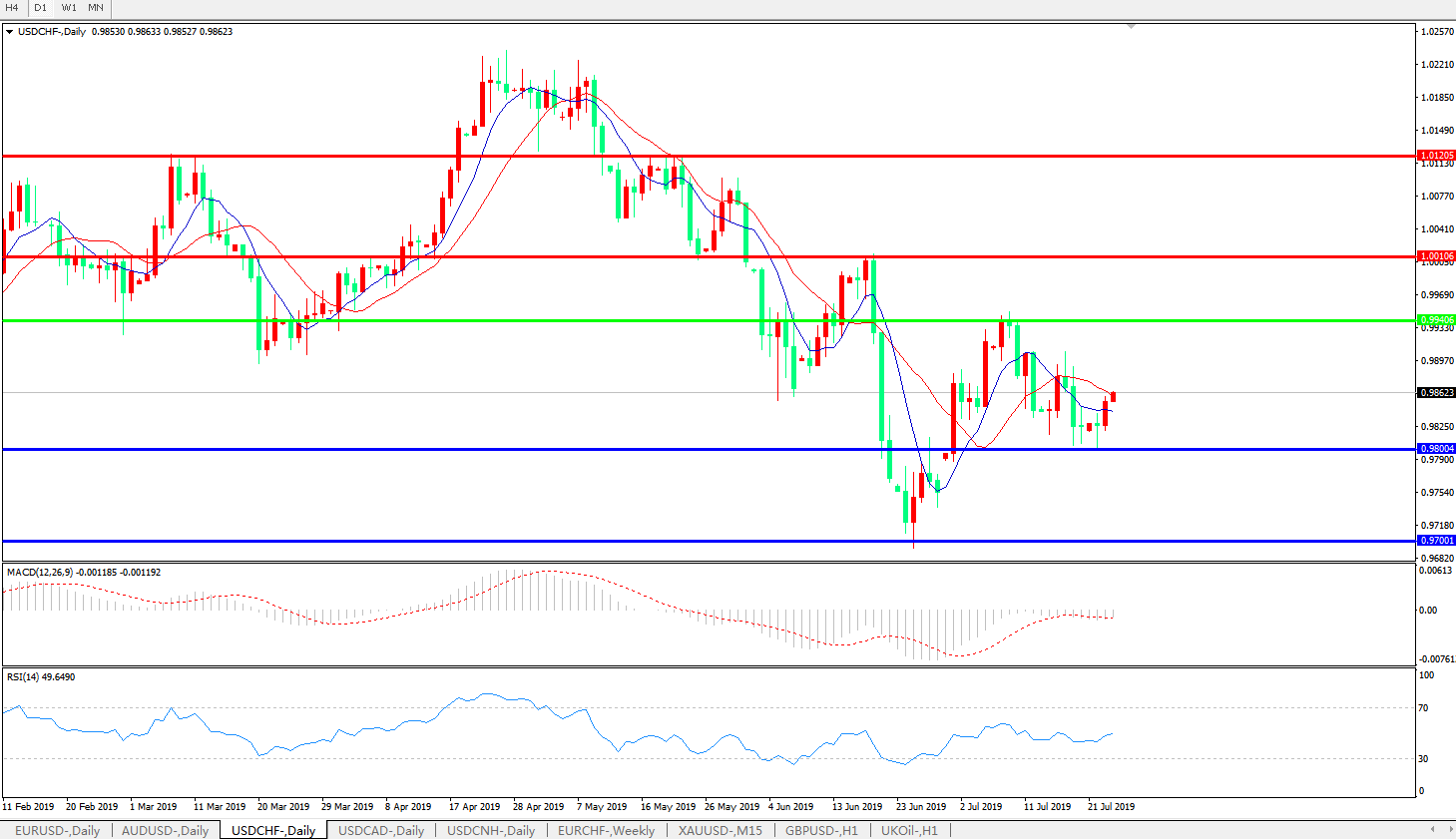 支撑位:0.9800、0.9700