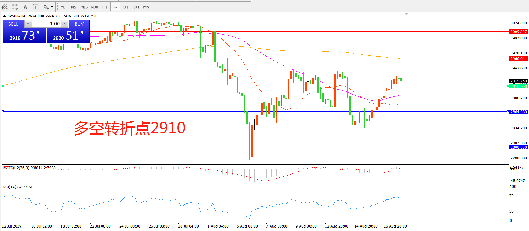 多空转折点:2910.00