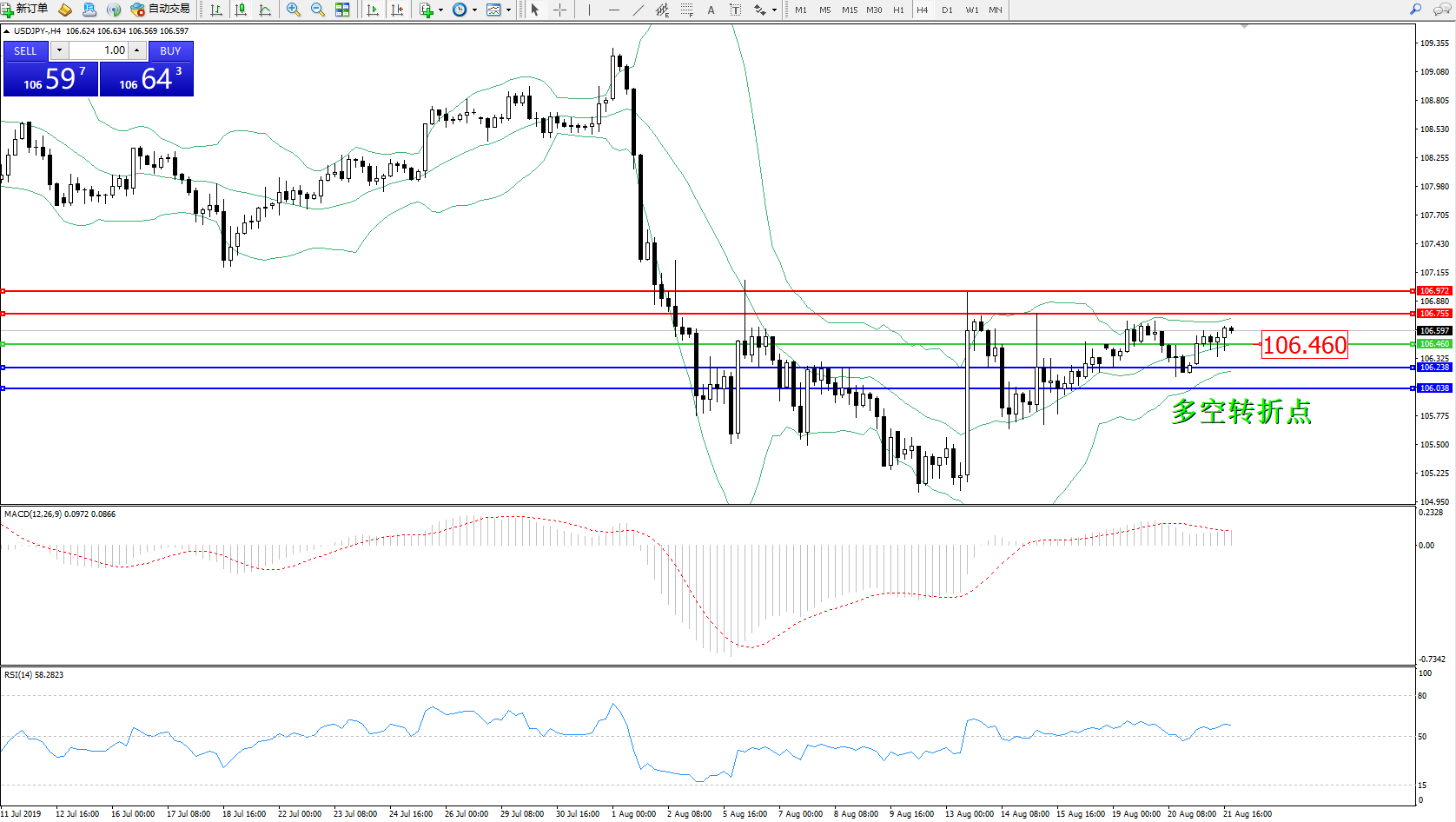 交易策略:106.460上方看涨,目标106.755106.972