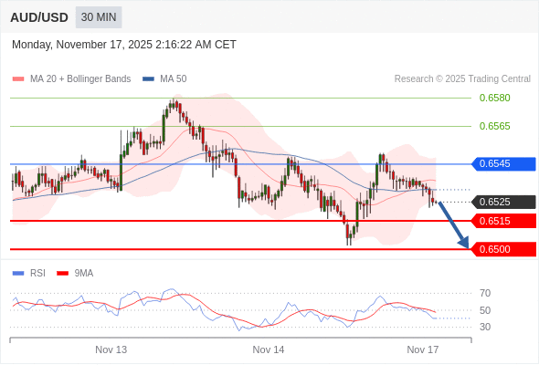 在 0.6545 之下,看跌,目标价位为 0.6515 ,然后为 0.6500 。