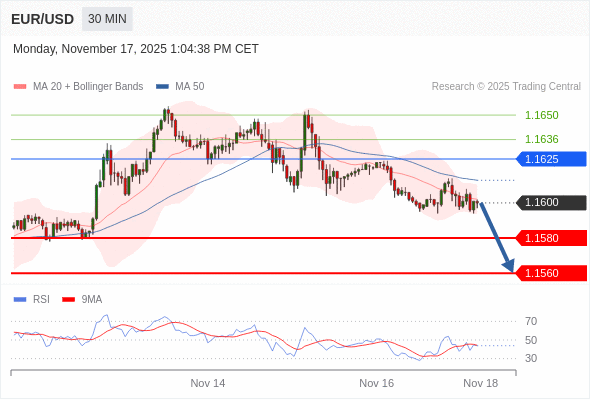 交易策略: 在 1.1625 之下,看跌,目标价位为 1.1580 ,然后为 1.1560 。