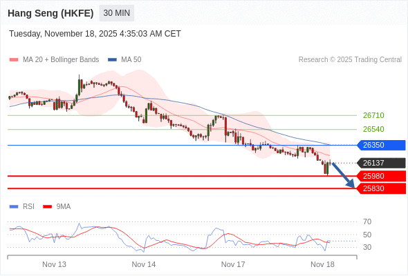 香港恒生指数期货 当日内: 短期关键阻力位在26350。