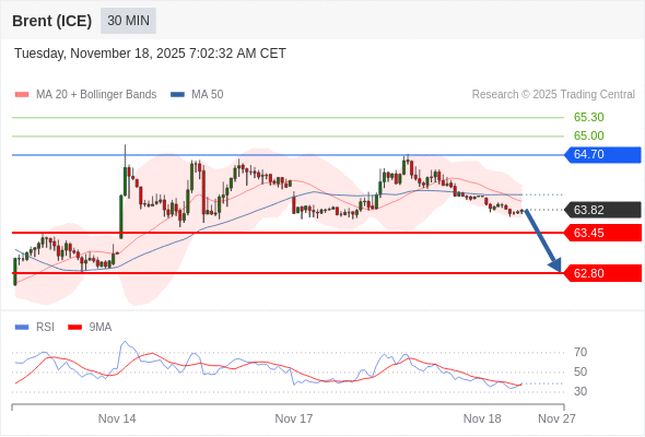 在 64.70 之下,看跌,目标价位为 63.45 ,然后为 62.80 。