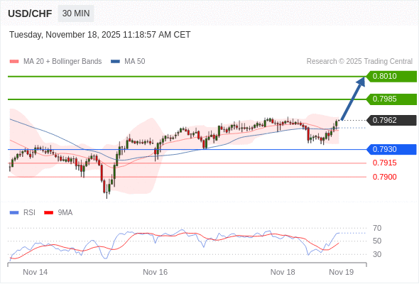 在 0.7930 之上,看涨,目标价位为 0.7985 ,然后为 0.8010 。