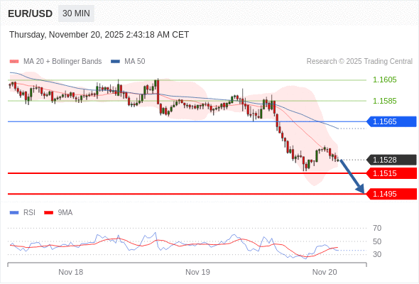 在 1.1565 之下,看跌,目标价位为 1.1515 ,然后为 1.1495 。