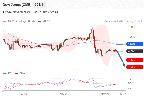 在 46275 之下,看跌,目标价位为 45650 ,然后为 45380 。