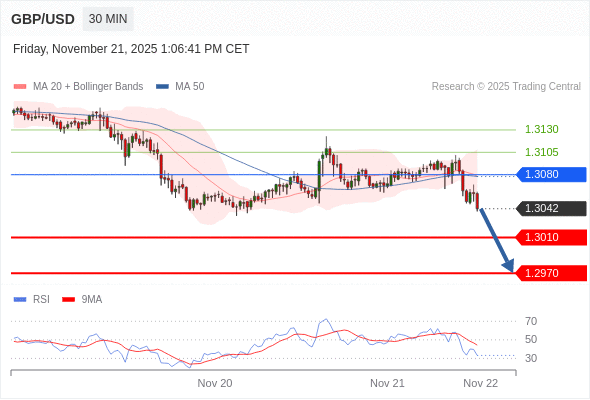 在 1.3080 之下,看跌,目标价位为 1.3010 ,然后为 1.2970 。