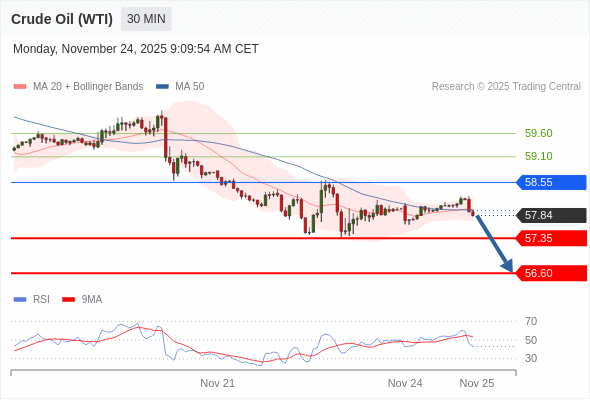 在 58.55 之下,看跌,目标价位为 57.35 ,然后为 56.60 。