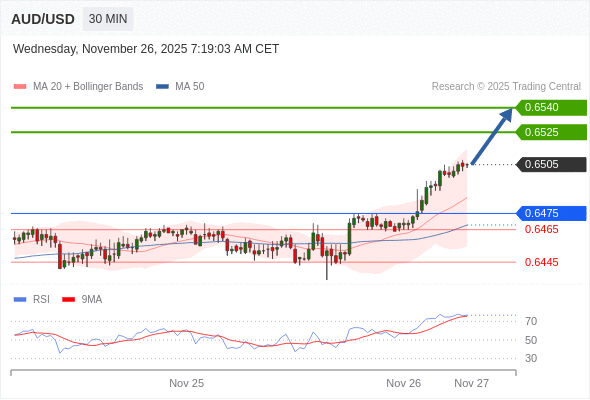 在 0.6475 之上,看涨,目标价位为 0.6525 ,然后为 0.6540 。