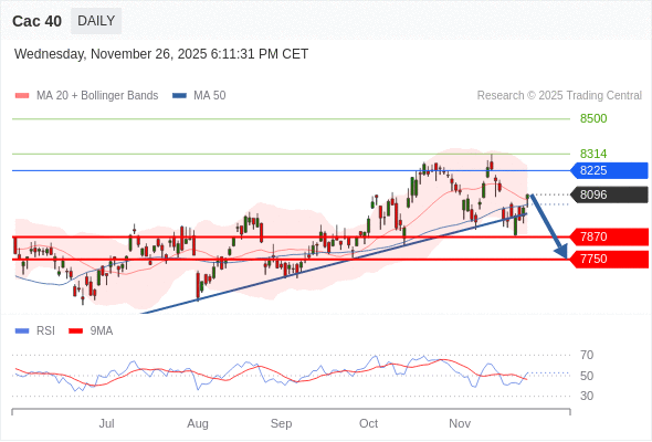 在 8225 之下,看跌,目标价位为 7870 ,然后为 7750 。
