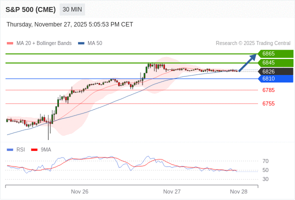 在 6810 之上,看涨,目标价位为 6845 ,然后为 6865 。