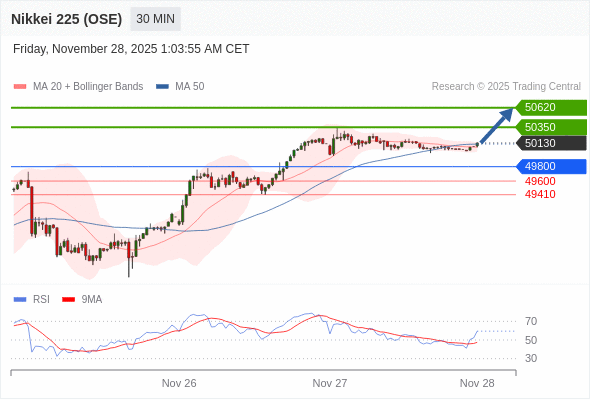 在 49800 之上,看涨,目标价位为 50350 ,然后为 50620 。