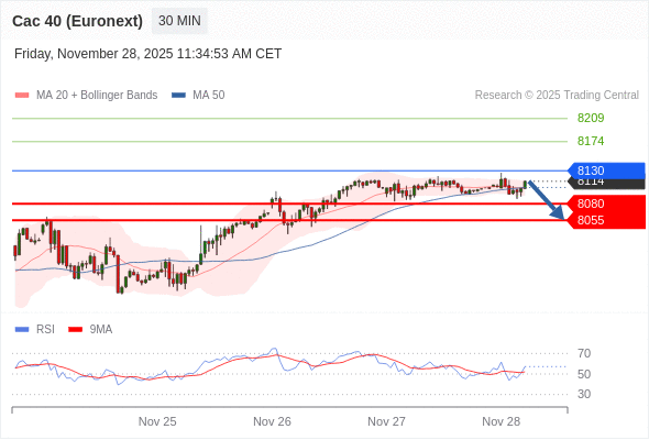 在 8130 之下,看跌,目标价位为 8080 ,然后为 8055 。