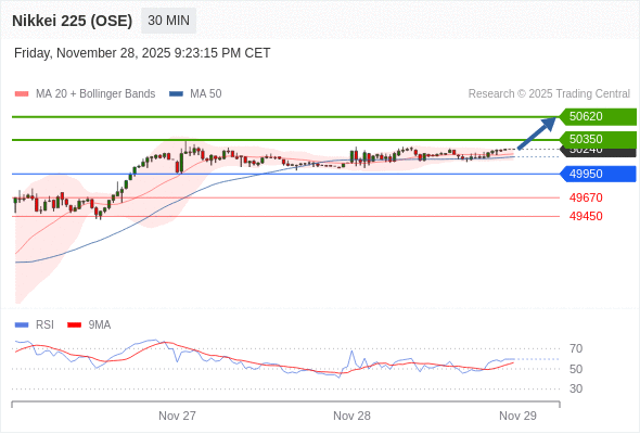在 49950 之上,看涨,目标价位为 50350 ,然后为 50620 。