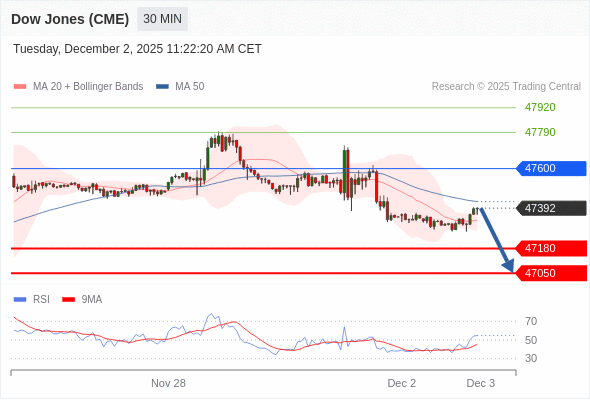 在 47600 之下,看跌,目标价位为 47180 ,然后为 47050 。