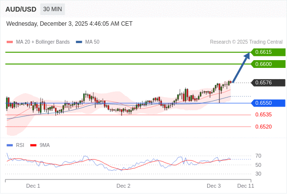 在 0.6550 之上,看涨,目标价位为 0.6600 ,然后为 0.6615 。