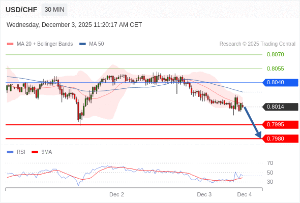 美元/瑞郎 当日内: 短期关键阻力位在0.8040。