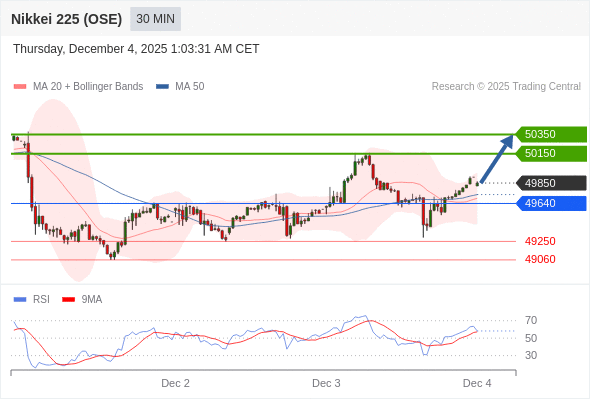 在 49640 之上,看涨,目标价位为 50150 ,然后为 50350 。