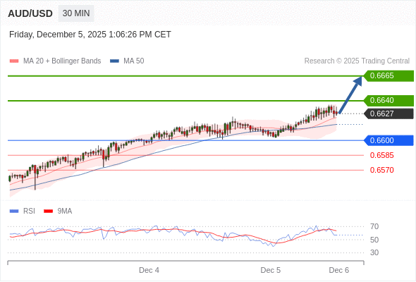 在 0.6600 之上,看涨,目标价位为 0.6635 ,然后为 0.6650 。
