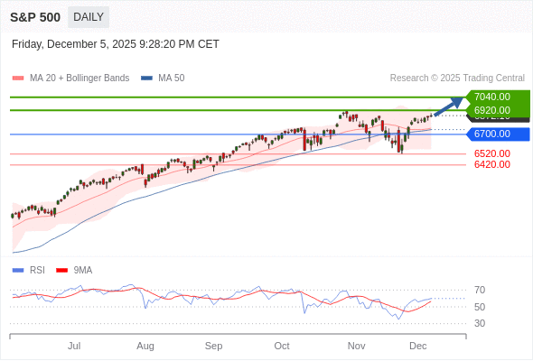 在 6700.00 之上,看涨,目标价位为 6920.00 ,然后为 7040.00 。