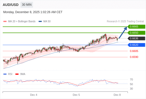 在 0.6620 之上,看涨,目标价位为 0.6650 ,然后为 0.6665 。