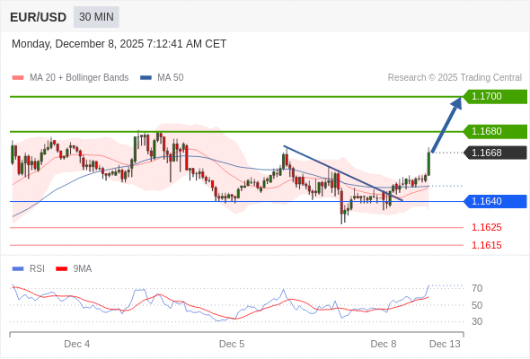 在 1.1640 之上,看涨,目标价位为 1.1680 ,然后为 1.1700 。