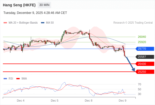 在 25770 之下,看跌,目标价位为 25430 ,然后为 25250 。
