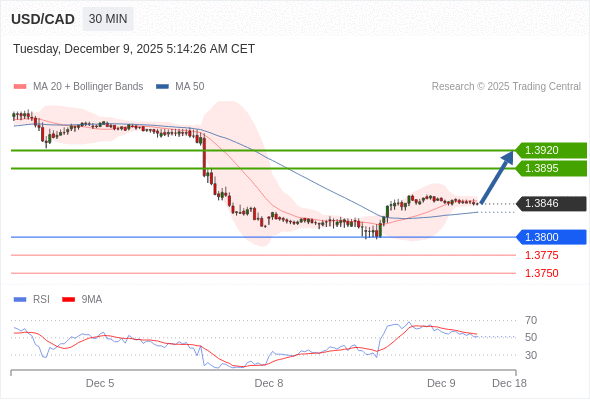 在 1.3800 之上,看涨,目标价位为 1.3895 ,然后为 1.3920 。