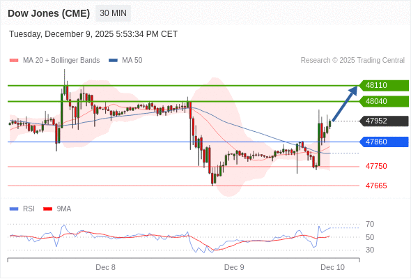 在 47860 之上,看涨,目标价位为 48040 ,然后为 48110 。
