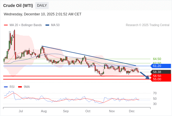 交易策略: 在 61.20 之下,看跌,目标价位为 56.50 ,然后为 55.00 。