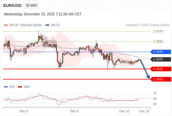 在 1.1640 之下,看跌,目标价位为 1.1615 ,然后为 1.1600 。