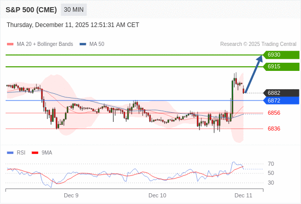 在 6872 之上,看涨,目标价位为 6915 ,然后为 6930 。