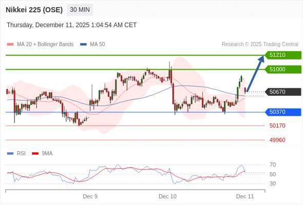 在 50370 之上,看涨,目标价位为 51000 ,然后为 51210 。