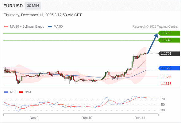交易策略: 在 1.1660 之上,看涨,目标价位为 1.1740 ,然后为 1.1760 。