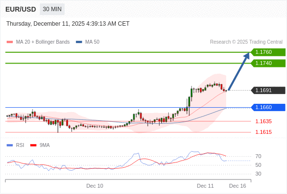 在 1.1660 之上,看涨,目标价位为 1.1740 ,然后为 1.1760 。