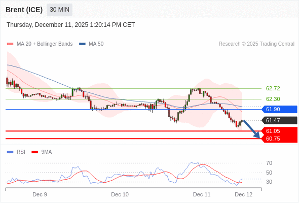 在 61.90 之下,看跌,目标价位为 61.05 ,然后为 60.75 。