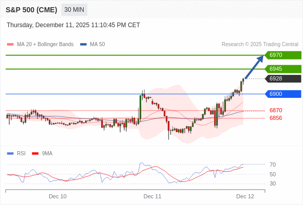 在 6900 之上,看涨,目标价位为 6945 ,然后为 6970 。