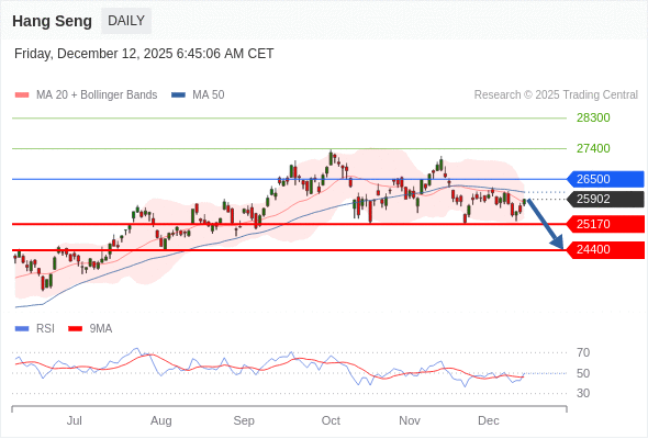 在 26500 之下,看跌,目标价位为 25170 ,然后为 24400 。