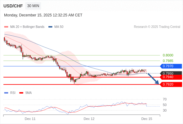 在 0.7970 之下,看跌,目标价位为 0.7940 ,然后为 0.7920 。