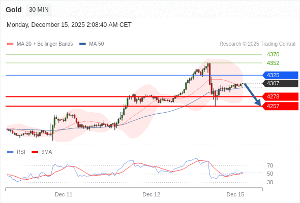 在 4325 之下,看跌,目标价位为 4278 ,然后为 4257 。