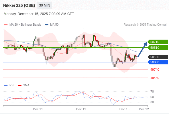 日经225股指期货 (OSE) 当日内: 目标位为50710。
