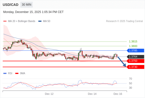 在 1.3785 之下,看跌,目标价位为 1.3750 ,然后为 1.3730 。