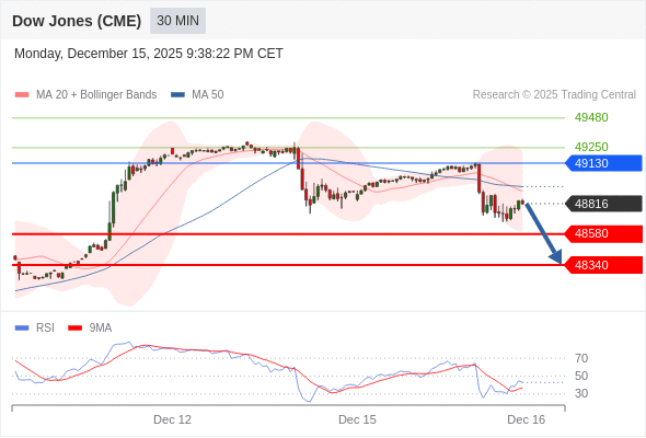 在 49130 之下,看跌,目标价位为 48580 ,然后为 48340 。